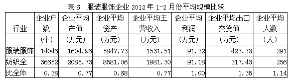 6服裝服飾企業(yè)平均規(guī)模比較