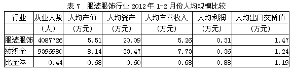 7服裝服飾行業(yè)人均規(guī)模比較