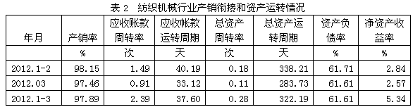 2紡織機(jī)械行業(yè)產(chǎn)銷銜接和資產(chǎn)運(yùn)轉(zhuǎn)情況