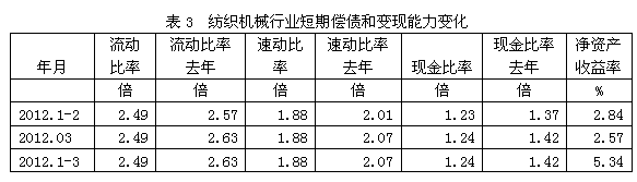 3紡織機(jī)械行業(yè)短期償債和變現(xiàn)能力變化