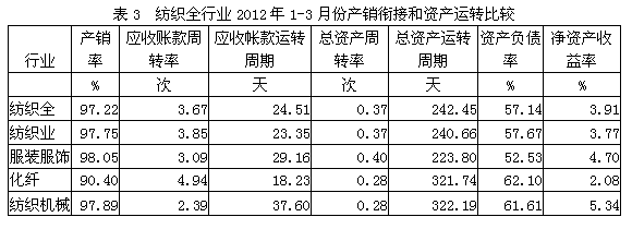 3紡織全行業(yè)產(chǎn)銷銜接和資產(chǎn)運轉情況