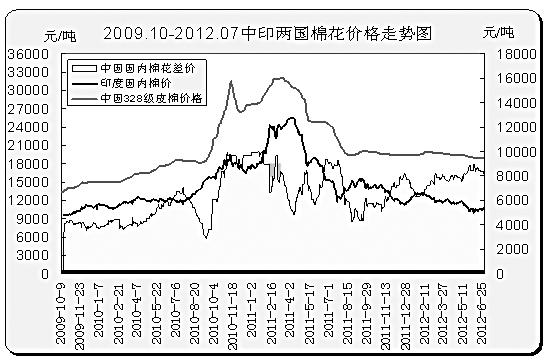 2011~2012年度注定是紡織行業(yè)的“陣痛年”,不佳的宏觀經(jīng)濟(jì)環(huán)境以及疲軟的下游需求造成原料棉花價(jià)格的急轉(zhuǎn)直下。在收儲(chǔ)政策的支撐下,國內(nèi)棉花價(jià)格的下跌幅度要小于國外市場(chǎng),內(nèi)外棉價(jià)差持續(xù)拉大,而棉花配額政策使得低廉外棉難以進(jìn)入國內(nèi)市場(chǎng),國內(nèi)棉紡企業(yè)用紗成本高居不下,遭遇了“單邊高價(jià)”的尷尬局面。與此同時(shí),印度、巴基斯坦棉紗價(jià)格優(yōu)勢(shì)顯現(xiàn),低價(jià)進(jìn)口紗順勢(shì)大量進(jìn)入中國市場(chǎng),搶占國內(nèi)棉紗市場(chǎng)份額。