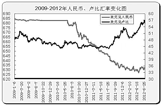 涉及到進(jìn)出口,匯率是一個(gè)不能回避的問題。2010年以來,人民幣單邊走強(qiáng)的趨勢(shì)明顯,美元兌人民幣從之前1∶6.85一路跌至到1∶6.33附近,人民幣幣值不斷提升。而印度盧比則從2011年7月開始逐漸貶值,下行的格局十分明顯。人民幣的升值一方面不利于我國棉紡織品的出口,另一方面則是鼓勵(lì)國內(nèi)用紗企業(yè)利用匯率優(yōu)勢(shì)采購國外棉紗;相反,盧比的不斷貶值則持續(xù)增加了其國內(nèi)商品的競(jìng)爭(zhēng)力,棉紗出口優(yōu)勢(shì)顯現(xiàn)。