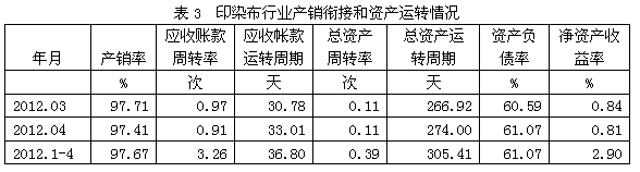 3印染布行業(yè)產(chǎn)銷銜接和資產(chǎn)運轉(zhuǎn)情況