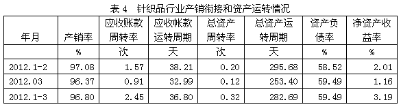 4針織品行業(yè)產(chǎn)銷銜接和資產(chǎn)運(yùn)轉(zhuǎn)情況
