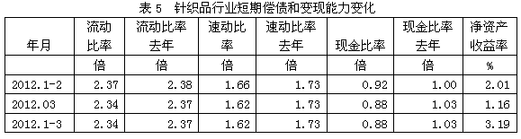 5針織品行業(yè)短期償債和變現(xiàn)能力變化