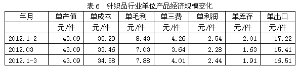 6針織品行業(yè)單位產(chǎn)品經(jīng)濟(jì)規(guī)模變化