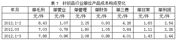 7針織品行業(yè)單位產(chǎn)品成本構(gòu)成變化
