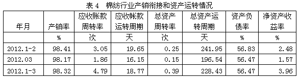 4棉紡行業(yè)產(chǎn)銷銜接和資產(chǎn)運(yùn)轉(zhuǎn)情況