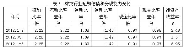 5棉紡行業(yè)短期償債和變現(xiàn)能力變化