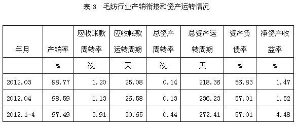 3毛紡行業(yè)產(chǎn)銷銜接和資產(chǎn)運(yùn)轉(zhuǎn)情況