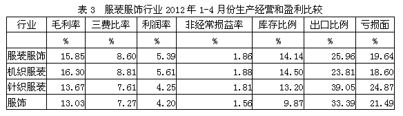 2012年1-4月服裝服飾行業(yè)經濟運行分析