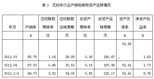 3無紡布行業(yè)產(chǎn)銷銜接和資產(chǎn)運(yùn)轉(zhuǎn)情況