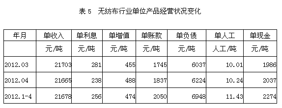 5無紡布行業(yè)單位產(chǎn)品經(jīng)營狀況變化