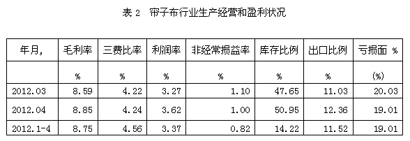 2簾子布行業(yè)生產(chǎn)經(jīng)營(yíng)和盈利狀況