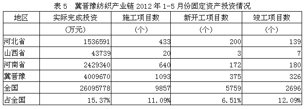 5 冀晉豫紡織產(chǎn)業(yè)鏈固定資產(chǎn)投資情況