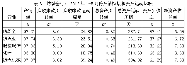 3紡織全行業(yè)產(chǎn)銷銜接和資產(chǎn)運轉(zhuǎn)情況