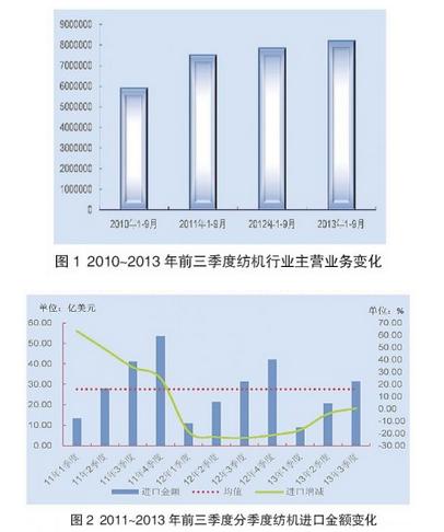 據(jù)國家統(tǒng)計局數(shù)據(jù)顯示,今年年前三季度,我國紡機行業(yè)總體發(fā)展平穩(wěn),列入統(tǒng)計范圍的718家紡機企業(yè)的主營業(yè)務收入為825.09億元,同比增長4.65%;實現(xiàn)利潤總額為52.42億元,同比增加6.93億元;虧損企業(yè)虧損額為3.43億元,同比增長12.17%,虧損面達14.90%。紡機行業(yè)進出口累計金額50.03億美元,同比增長3.88%。其中,進口31.49億美元,同比增長0.37%,出口18.54億美元,同比增長10.44%。