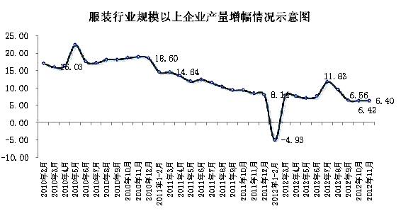 綜觀全行業(yè),2012年服裝總產(chǎn)量與2011年基本持平。