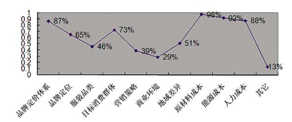 多種因素影響服裝價格 一件服裝從最初的原材料到成衣再到零售終端之間的價格傳遞曲線,究竟會受到多少因素的影響?根據(jù)記者的調(diào)查,圍繞服裝價格上漲的問題遠(yuǎn)沒那么簡單,以下為調(diào)查中顯示出的影響服裝價格最突出的幾個因素。 從服裝品牌定價體系來看:服裝價格中,主要分為出廠價格、尾單價格和標(biāo)牌價格。對于服裝品牌來說,可能每家都有自己的一套定價體系,但卻并不是合理、統(tǒng)一的定價體系。如一件成衣,原材料占成本的比例遠(yuǎn)遠(yuǎn)不如人力成本、能源成本所占的比例,人工成本占比則從原來的15%上升到30%,能源成本占比也從原來的10%上升到15%。只有標(biāo)價的約1/6是成本價。還有1/3是屬于批發(fā)商或加盟代理商的,最后的1/3是零售渠道成本。而其他零售終端,雖然整體價格低于商場價格,但由于定價靈活,同一款產(chǎn)品的定價可謂五花八門。因此,服裝價格調(diào)整與原材料價格、人工成本、場地租金、進(jìn)店費和物流費用等等因素息息相關(guān)。 服裝品牌通過提高價格的行為轉(zhuǎn)嫁成本,這本身無可非議,但有一點值得強調(diào),向市場終端轉(zhuǎn)嫁成本必須有個合理的幅度,產(chǎn)品的價格也不能只漲不跌。如果服裝品牌一味抬高價格或是提高標(biāo)價再打折,消費者很難維持對品牌的忠誠度并為品牌的漲價買單。 從服裝品牌定位來看:近幾年國內(nèi)服裝品牌爭相走高端路線。服裝價格漲與降,與品牌定位同樣有密不可分的關(guān)系。如在全國覆蓋面極廣的歐時力品牌,近兩年該品牌以帶著Chanel氣質(zhì)的外套、背包等“類似”大牌的設(shè)計在內(nèi)地?zé)豳u,試圖走上輕奢侈路線,去年初,LVMH集團(tuán)買下歐時力10%的股份,交易規(guī)模高達(dá)2億美元,從而正式“傍上”國際大牌,標(biāo)價也不斷水漲船高。 類似歐時力這樣品牌定位逐漸升級帶動價格走高的品牌不在少數(shù),這種依靠價格策略向國外品牌看齊的趨勢越來越明顯。如少淑女裝在初入市場時的定位在中低端市場,一方面是拓寬市場、擴大消費群,一方面試水在消費者心中的接受能力。隨著品牌知名度的打響,價格的提升也是一種品牌形象的提升,通過漲價區(qū)分品牌等級,滿足消費者對更高層次品牌的一種追求。面對國內(nèi)品牌紛紛漲價,國外品牌反而顯得較為“淡定”,國外品牌尤其是品牌定位在高端市場和快時尚領(lǐng)域,有針對性的消費者。 從服裝品類來看:價格增長趨緩的有可能是休閑裝、以及價格中檔、標(biāo)準(zhǔn)化程度高的商品。這些品類的服裝在實體店和網(wǎng)店的博弈最為激烈??鞎r尚和網(wǎng)購的特點是時尚、標(biāo)準(zhǔn)化程度高,價格優(yōu)勢明顯,因此,其對實體店服裝銷售影響更多的是休閑裝、以及價格中檔、標(biāo)準(zhǔn)化程度高的商品,例如男士襯衫、針織內(nèi)衣等。 價格增長有可能更加明顯的是童裝:一方面,因為品牌童裝大部分屬于純棉制品,棉價的上漲直接導(dǎo)致制作成本的上漲。另一方面,從以往數(shù)據(jù)而言,在整體服裝零售量同比增速相比上年有顯著放緩的情況下,童裝零售量則呈現(xiàn)出加快增長的態(tài)勢。童裝已逐漸脫離傳統(tǒng)模式的桎梏,向時尚潮流、可愛活潑、品質(zhì)健康等多層次、多要求方向發(fā)展。究其原因,同當(dāng)前孕育主體人群80后一代的多樣化、個性化需求不無關(guān)系。童裝量價齊升的局面在2013年會有所顯現(xiàn)。 從目標(biāo)消費群體來看:我國服裝消費群體日趨細(xì)化,他們在價值取向、生活觀念、消費習(xí)慣、消費方式等方面都存在著明顯差異。面對成本上漲導(dǎo)致的價格上漲情況,高端品牌消費者由于對價格不敏感,高端品牌日子還比較好過,而對于低端品牌消費者而言,低端品牌日子就沒有那么好過了。 從營銷策略來看:針對目標(biāo)消費群體的心理,進(jìn)行適當(dāng)?shù)膬r格調(diào)整也算情理之中的事。國內(nèi)市場的大環(huán)境出現(xiàn)了沒打折就沒銷售的現(xiàn)象,但也出現(xiàn)了有些品牌借此提高價格為營銷策略,其目的在于以高價走向中高端市場,短期會產(chǎn)生一定效果,但從長遠(yuǎn)來看弊大于利。 調(diào)查顯示,消費者對于國際快時尚品牌的購買熱情不減,主要是國際快時尚品牌具有穩(wěn)定價格、產(chǎn)品快速更新、以及潮流度強的優(yōu)勢,打折活動不頻繁,類似這樣的快時尚品牌一年之中只在夏季和冬季做兩次促銷活動,相較于國內(nèi)服裝品牌頻繁做活動,更顯得“物以稀為貴”。在消費者看來,以便宜的價格買到國際性的產(chǎn)品是占到了便宜。 從商業(yè)領(lǐng)域來看:首先,百貨商場、購物中心等商業(yè)流通環(huán)境的人工、物流、倉儲、廣告投入、渠道建設(shè)、店鋪租金、裝修、維護(hù)、水電等費用成本上漲,如商場提點這一環(huán)節(jié),根據(jù)各家品牌所處商場樓層、地段、品牌知名度、銷售狀況等的不同,商場提點數(shù)額也不相同。另外,近年零售業(yè)的競爭很激烈,百貨商場、購物中心等越來越多,都在挖人才,造成人力成本提升。其次,宏觀經(jīng)濟(jì)增長放緩明顯,消費者對服裝消費的需求有顯著的下降,服裝實際消費增速放緩,服裝企業(yè)需要通過拉動衣著類單品價格來推動服裝銷售額。這些都會影響終端市場上的服