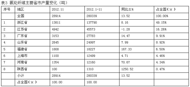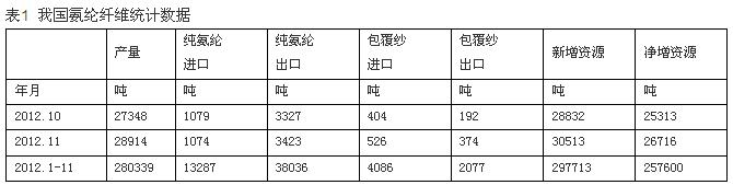 氨綸行業(yè)2012年1-11月份經(jīng)濟(jì)運(yùn)行分析