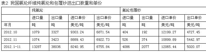 1氨綸纖維新增資源強(qiáng)勁 根據(jù)國(guó)家統(tǒng)計(jì)局和海關(guān)的統(tǒng)計(jì)數(shù)據(jù),我國(guó)2012年1-11月份氨綸纖維產(chǎn)量為28.03萬(wàn)噸,同比增加13.52%;1-11月份進(jìn)口氨綸纖維純氨綸1.33萬(wàn)噸,出口3.80萬(wàn)噸;進(jìn)口氨綸包覆紗0.41萬(wàn)噸,出口0.21萬(wàn)噸;新增資源(產(chǎn)量+純氨綸進(jìn)口+氨綸包覆紗進(jìn)口)29.77萬(wàn)噸,凈增資源(新增資源-純氨綸出口-氨綸包覆紗出口,即表觀需求)25.76萬(wàn)噸,顯示中國(guó)氨綸纖維產(chǎn)業(yè)的市場(chǎng)需求比較強(qiáng)勁。 與上月相比,氨綸纖維行業(yè)2012年11月份產(chǎn)量和進(jìn)出口有所波動(dòng),從而使得當(dāng)月新增資源和凈增資源均有所變化。