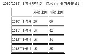 7月,海關總署公布了上半年我國外貿(mào)數(shù)據(jù),數(shù)據(jù)顯示上半年我國進出口總值同比增長8.6%,特別是6月份單月進、出口則首現(xiàn)16個月來的負增長,這一弱勢表現(xiàn)引起市場的憂慮。商務部評價上半年我國外貿(mào)遇到了比較嚴峻的外部環(huán)境,提出了最主要的原因還是傳統(tǒng)市場的萎縮,另外,人民幣升值和勞動力價格持續(xù)上漲,也給出口企業(yè)帶來了不小的壓力?! ?/p> 從我國紡織品貿(mào)易表現(xiàn)來看,紡織品服裝出口額同比增速高出同期出口總體增速,而棉制紡織品進出口貿(mào)易額保持平穩(wěn)上漲,出口增速較2012年年底有較大提高,但增速逐月放緩。隨著人民幣匯率走高,尤其進入第二季度紡織淡季,一些出口型紡織企業(yè)受匯率影響較大,出口形勢不佳?! ?/p> 內(nèi)銷占比上升 出口增速放緩 我國棉紡織出口約占行業(yè)銷售總額的6%左右,低于全紡織行業(yè)的15%左右出口占比。近幾年,由于國際市場需求下降,再加上我國紡織品內(nèi)銷市場的蓬勃發(fā)展,我國紡織品外銷占比呈下降趨勢。