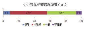 協(xié)會對會員企業(yè)的調(diào)查表明,100家樣本企業(yè)上半年的主營業(yè)務(wù)收入增長12.58%,利潤增長10.82%,平均利潤率5.68%。上半年60%的企業(yè)認(rèn)為產(chǎn)品銷售價(jià)格保持不變,只有10%的企業(yè)認(rèn)為有所增加;從成本角度看,原材料價(jià)格比較穩(wěn)定,職工工資繼續(xù)保持了較快增長,36.8%的企業(yè)反映稅費(fèi)負(fù)擔(dān)增長超過10%;68.2%的企業(yè)認(rèn)為產(chǎn)成品庫存保持穩(wěn)定,說明產(chǎn)銷情況比較好;41.4%的企業(yè)表示應(yīng)收賬款增加,可能會造成企業(yè)的資金緊張。