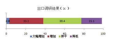 根據(jù)調(diào)研,2.8%的企業(yè)表示出口大幅增長,35.2%的企業(yè)出口增長超過10%,近40%的企業(yè)出口基本保持不變,21.1%的企業(yè)出口出現(xiàn)一定程度的下降。