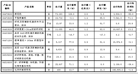 前三季度紡織業(yè)出口平穩(wěn) 中國紡織機(jī)械出口強(qiáng)勁