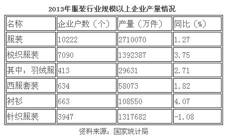 ——2013年服裝行業(yè)經濟運行概況