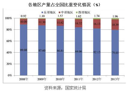 向中西部轉移明顯且持續(xù)