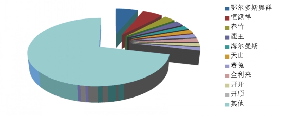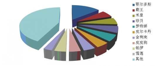 7、羊絨衫:前十位品牌市場綜合占有率合計(jì)為57.1% 根據(jù)中華全國商業(yè)信息中心的統(tǒng)計(jì),2014年1月份全國重點(diǎn)大型零售企業(yè)羊絨衫銷售前十位品牌市場綜合占有率合計(jì)為57.1%,鄂爾多斯、鹿王和米皇占據(jù)前三位。