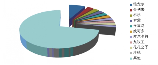 2、T恤衫:前十位品牌市場綜合占有率合計(jì)為19.6% 根據(jù)中華全國商業(yè)信息中心的統(tǒng)計(jì),2014年2月份全國重點(diǎn)大型零售企業(yè)t恤衫銷售前十位品牌市場綜合占有率合計(jì)達(dá)到19.6%,金利來、九牧王和雅戈?duì)栒紦?jù)前三位。