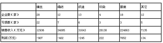 據(jù)對84家絲綢企業(yè)的財務(wù)情況統(tǒng)計,1-2月完成現(xiàn)行工業(yè)總產(chǎn)值28.94億元,實(shí)現(xiàn)銷售收入33.86億元,42家企業(yè)虧損,虧損面50%;盈虧相抵,盈利6454萬元?! ?/p>