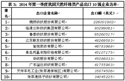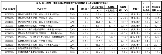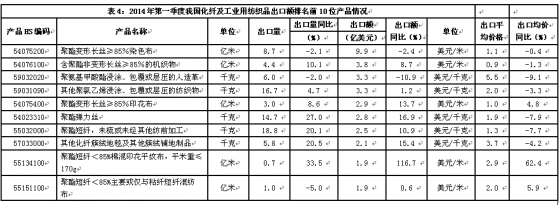 2014年一季度紡織業(yè)出口數(shù)據(jù)