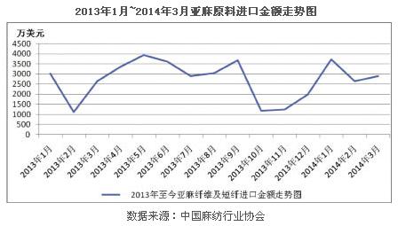 今年一季度,紡織工業(yè)完成投資807.71億元,同比增長16.42%,其中,麻紡織行業(yè)累計完成投資18.08億元,同比增長15.36%。與此同時,麻紡織企業(yè)新開工項目數(shù)量與施工項目數(shù)量較去年同期分別下降7.32%與25%,并且增速下降幅度較整個紡織行業(yè)相比稍大。 進出口市場穩(wěn)中有進 2014年一季度,全國麻紡織行業(yè)進出口累計總額達5.38億美元,比去年的4.99億美元同比增長7.63%。 進口總體情況良好,原料價格上升幅度較大。2014年一季度,全國麻紡織行業(yè)累計進口總額達1.93億美元,同比增長22.89%;其中麻原料累計進口金額達1.46億美元,同比增長25.33%;麻紗線累計進口金額達2589.22萬美元,同比增長39.59%;麻織物累計進口金額達1899.90萬美元,同比增長1.92%;麻制品累計進口金額達177.12萬美元,同比下降42.73%。 麻原料為主要進口力量,而亞麻原料與黃麻原料為主要進口金額拉動力量。其中亞麻原料累計進口金額達9258.21萬美元,同比增長36.44%;黃麻原料累計進口金額達561.29萬美元,同比下降38.46%。 縱觀2013年直至現(xiàn)在的亞麻原料進口情況,亞麻原料進口情況波動較大,上半年亞麻市場需求會增多,但下半年亞麻市場需求會減弱,企業(yè)需要根據(jù)市場形勢,及時調(diào)節(jié)企業(yè)運行情況。