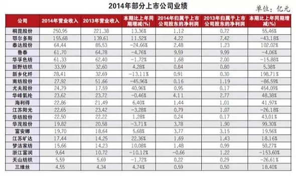 2014年是紡織行業(yè)接受考驗(yàn)的一年,整體運(yùn)行態(tài)勢(shì)嚴(yán)峻,但紡織上市公司在技術(shù)研發(fā)、產(chǎn)品創(chuàng)新、精細(xì)化管理、渠道拓展以及品牌建設(shè)上都不斷努力,主要經(jīng)營(yíng)業(yè)績(jī)總體平穩(wěn)提升。