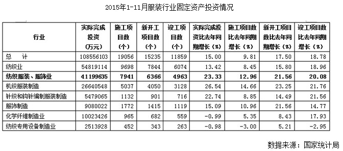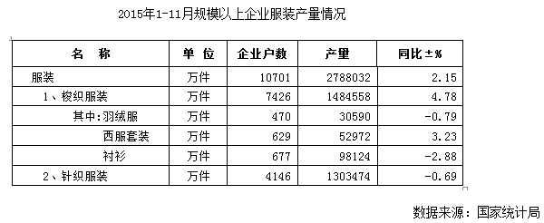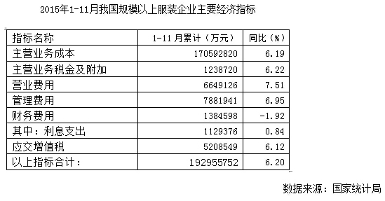 2015年1-11月服裝行業(yè)經(jīng)濟(jì)運(yùn)行分析