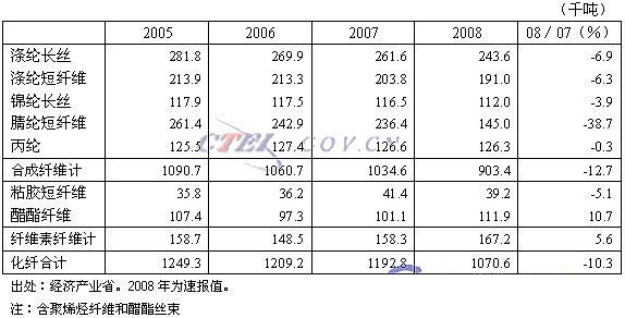 2008年日本化纖生產(chǎn)量107萬噸 比上年減少10.3%