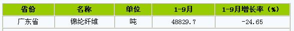 2012年三季度廣東省錦綸纖維產(chǎn)量