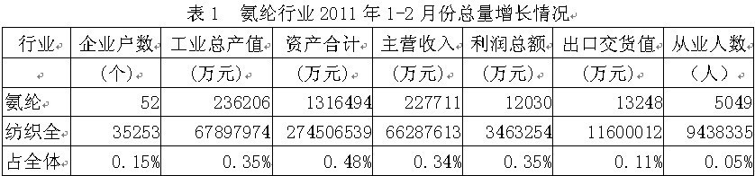 1氨綸行業(yè)總量增長情況