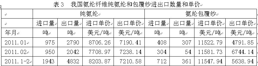 3氨綸纖維進出口數(shù)量和單價