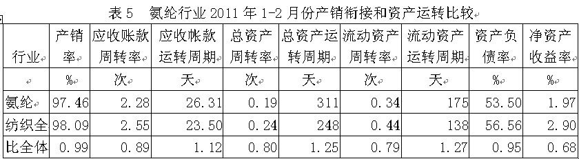 5氨綸行業(yè)產(chǎn)銷銜接和資產(chǎn)運轉(zhuǎn)情況
