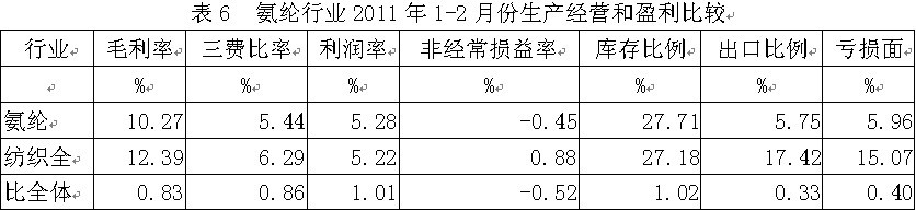 6氨綸行業(yè)生產(chǎn)經(jīng)營和盈利狀況