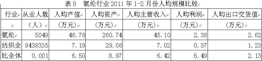 8氨綸行業(yè)人均規(guī)模比較