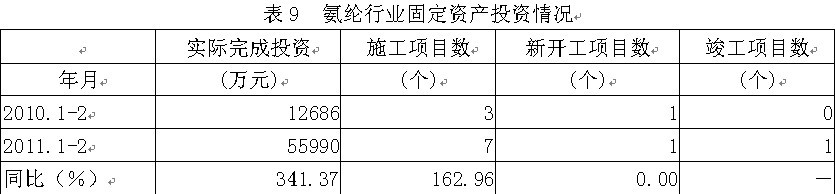 9氨綸行業(yè)固定資產(chǎn)投資情況