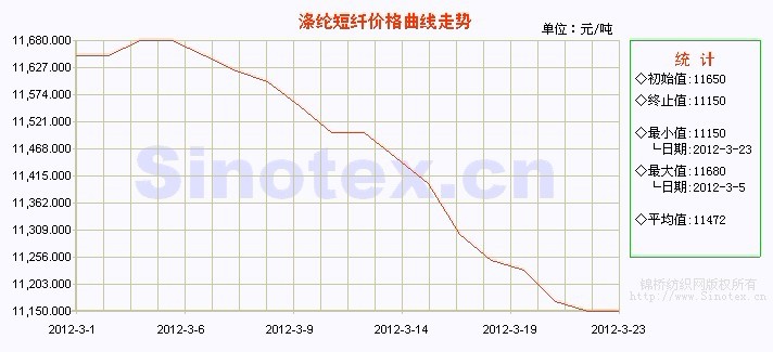 本周(3.17-3.23),聚酯原料行情穩(wěn)中探漲,下游紗線買盤僵持,備貨稀少。滌綸短纖行業(yè)開工負荷6.8成左右,庫存25天左右,產銷低迷。滌短市場價格疲弱下調,國內主流市場1.4D滌綸短纖送到成交報價為11200-11350元/噸(現款或承兌),較上周下跌200元/噸左右。