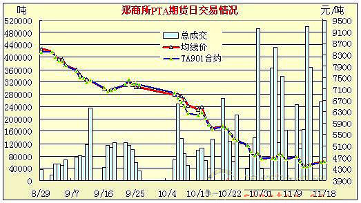 11月18日鄭州商品交易所PTA期貨成交及持倉(cāng)排名表