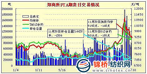 鄭商所PTA期貨交易行情(10-11-30)